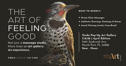What happens when ART and WELLNESS come together?On May 16th, from 9:00 AM to 12:00 PM, Onda opens its doors for a Pop-Up Art Gallery Experience unlike anything else in Florida, as part of the fourth edition of the North Port Art Crawl.