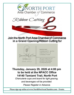 Join the North Port Area Chamber of Commerce for the Grand Opening/Ribbon Cutting of Banner Party of Four Ventures - Banner Boards on Thursday, January 29, 2026 at 4:00 at the NPACC Office - 14140 Tamiami Trail, North Port