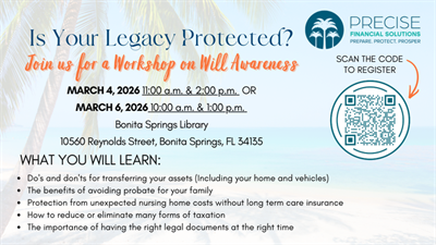 https://www.precisefsolutions.com/events#EstatePlanning #SmartPlanning #PeaceOfMind #RetirementReady #PuntaGordaEvents #FinancialFuture